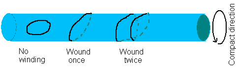 If we take the radius of the circle to be very large (the dimension is de-compactifying) then the allowed values of the momentum become very closely spaced and begin to form a continuum. These Kaluza-Klein momentum states will show up in the mass spectrum of the uncompactifed world. In particular, a massless state in the higher dimensional theory will show up in the lower dimensional theory as a tower of equally spaced massive states just as in the picture shown above. A particle accelerator would then observe a set of particles with masses equally spaced from each other. Unfortunately, we'd need a very high energy accelerator to see even the lightest massive particle. Strings have a fascinating extra property when compactified: they can