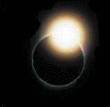 Generally, duration of totality can last anything from a few seconds up to 7 1/2 minutes. Maximum duration for total eclipse in 1998 and 1999 are 4.1 min. and 2.4 min. respectively. Then the flash of Diamond Ring and Baily's beads occur again, marking the " Third Contact ", announcing that the total eclipse is over. Now, the Moon moves off the phase of the Sun. "Last Contact" will takes place when the partial phase of the Sun is end. All phenomenons during a complete event of total solar eclipse is about three hours from first contact to last contact.