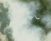 First of all a word of safetly, Never look at the Sun without proper eye protection! Sunlight will result in eye damage or blindness. There is safe ways to watch the sun. For over an hour before the total eclipse, the edge of the Moon gradually covers the solar disk. "First Contact" happens when the edge of the Moon first intrudes on the Sun. From three minutes to one minute before a totality, only a thin crescent-shaped sliver of the Sun remains. The landscape appears darker than usual. If atmospheric conditions are right, "Shadow Bands" will appears like the occurrence of sunlight under the swimming pool. This effect causes by atmospheric phenomenon.